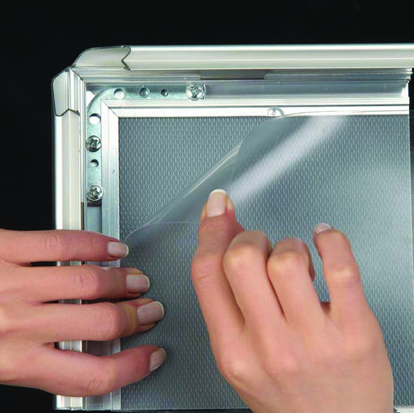 Snap frame aluminum edges allow fast and easy message updates.